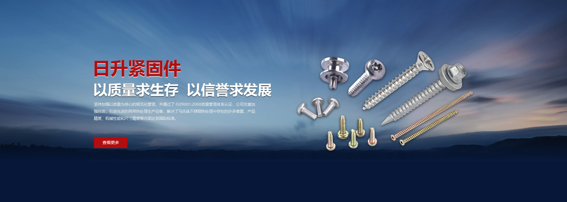 寧波日升緊固件有限公司是一家創(chuàng)建于1984年的老牌緊固件生產(chǎn)廠(chǎng)家,可按照GB、JlS、ANSI 、DlN、lSO等標(biāo)準(zhǔn)生產(chǎn)各種類(lèi)型的自攻螺釘、機(jī)螺釘、組合螺釘、三角螺釘、不銹鋼螺釘、六角螺釘、防盜螺釘和非標(biāo)緊固件等產(chǎn)品,符合歐洲ROHS環(huán)保要求。日升的技術(shù)實(shí)力雄厚,生產(chǎn)設(shè)備先進(jìn),檢測(cè)手段齊全,引進(jìn)了一整套精密高速螺釘?shù)纳a(chǎn)設(shè)備。自主所有的“方銳”品牌在同行中享有較高的聲譽(yù)。在激烈的市場(chǎng)競(jìng)爭(zhēng)中,日升堅(jiān)持加強(qiáng)以質(zhì)量為核心的規(guī)范化管理,并通過(guò)了IS09001:2015和IATF16949:2016質(zhì)量管理體系認(rèn)證,公司引進(jìn)了先進(jìn)的網(wǎng)帶熱處理生產(chǎn)設(shè)備,解決了馬氏體不銹鋼熱處理中存在的許多難題,產(chǎn)品精度、機(jī)械性能和尺寸精度等各個(gè)方面達(dá)到了國(guó)際標(biāo)準(zhǔn)。